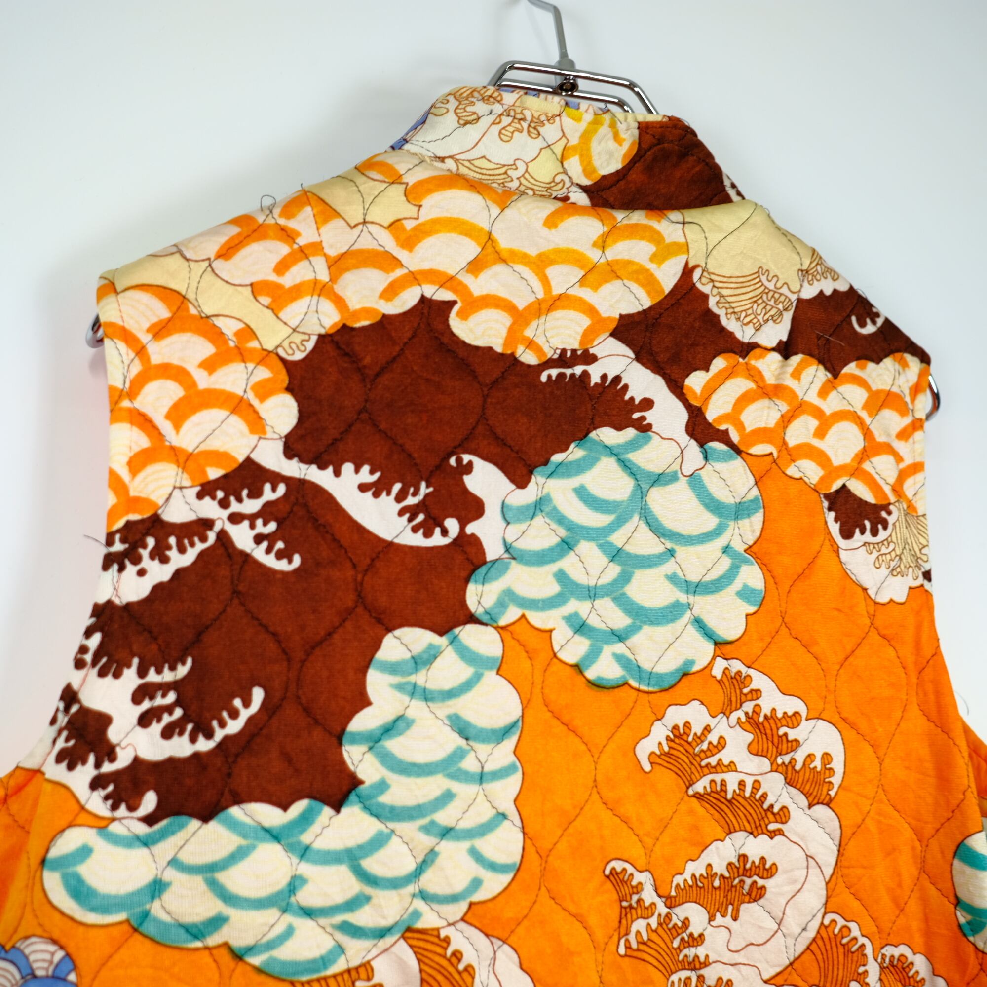 アジアテイストのデザイン、和柄のような波や雲が特徴のベスト。