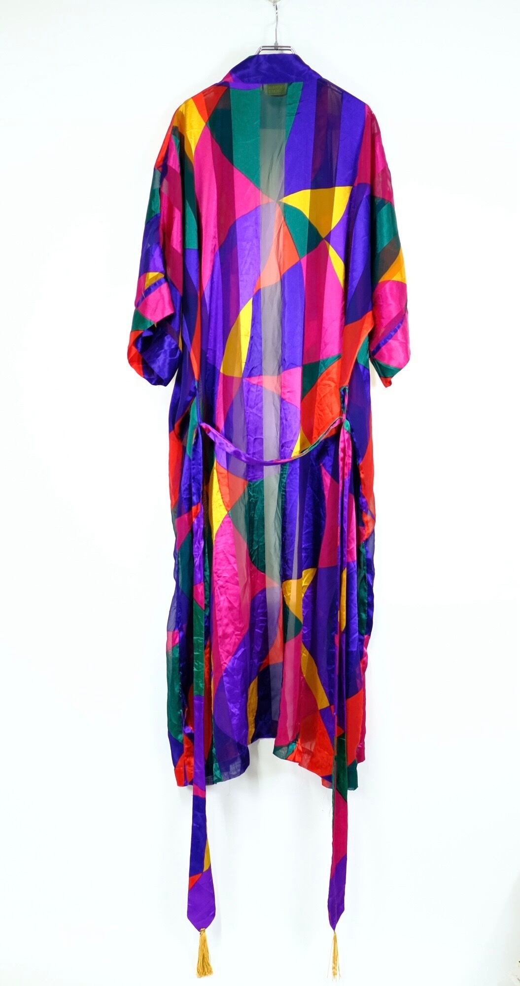 1980s ビンテージ 総柄ガウンコート アートデザイン シャツ 古着屋